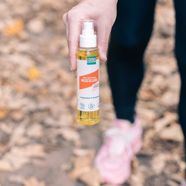 Huile Musculaire : Aide à dénouer les tensions musculaires et facilite la préparation et récupération sportive. Sa texture fluide permet une parfaite glisse sur la peau sans laisser de sensation grasse. 100% origine naturelle. Labellisé Bio et Vegan. Utilisée et recommandée par les kinésithérapeutes. Fabriqué en Bretagne, France.